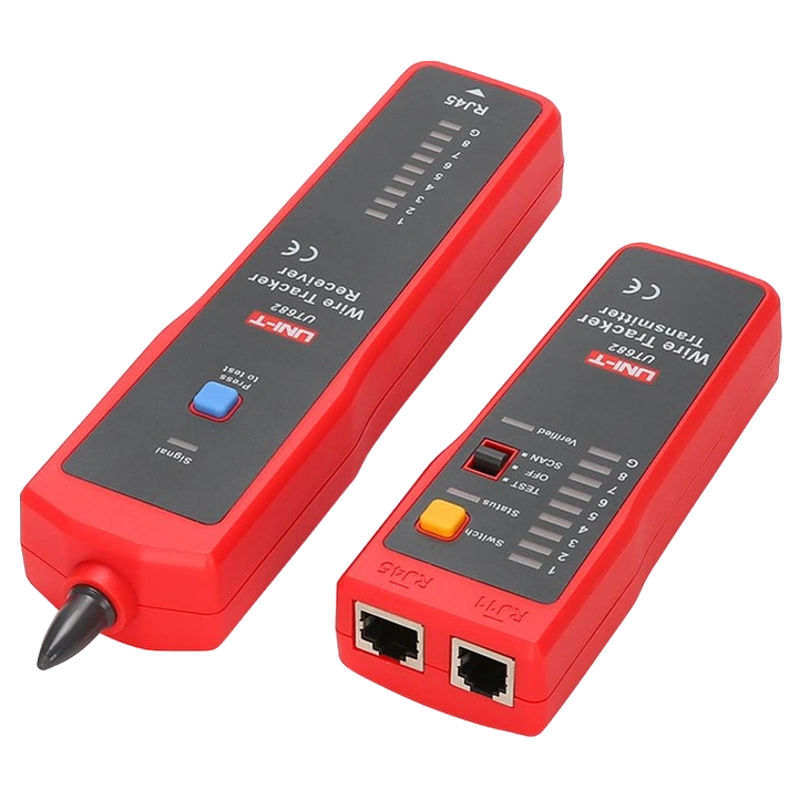 Тестер кабелю UNI-T UT682 складається з трансмітера і ресивера. Тестер використовується для трекінгу телефонних проводів, мережевих проводів, кабелів, перевірки мережевих проводів та ін. Це ідеальний інструмент для робітників, які займаються встановленням і обслуговуванням мереж з лініями передачі даних.