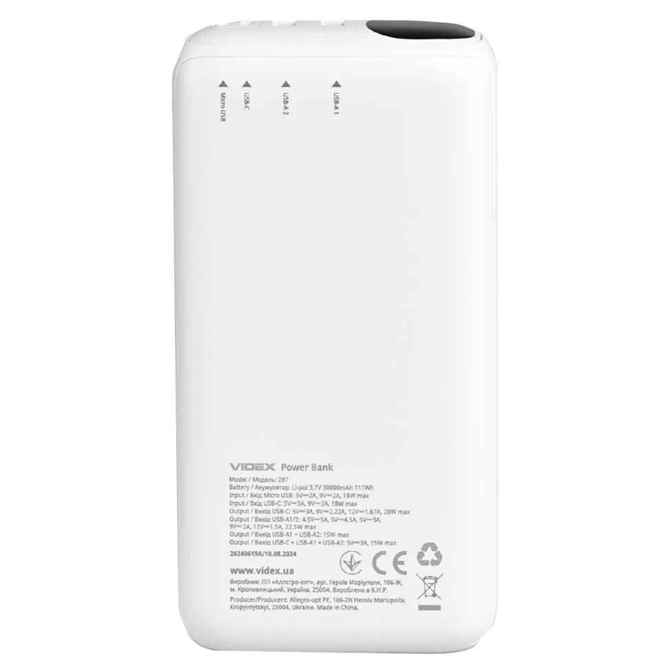Повербанк VIDEX VPB-297 22.5W White 30000mAh