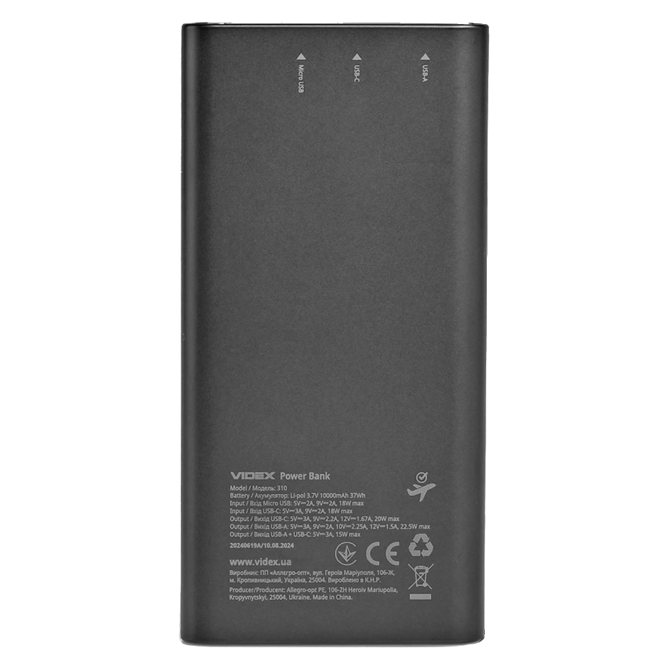 Повербанк VIDEX VPB-310 22.5W Black 10000mAh