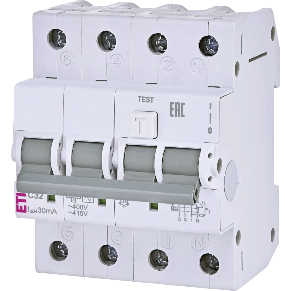 Дифавтомат ЕТІ KZS-4M 3p+N 32/0.03 6kA