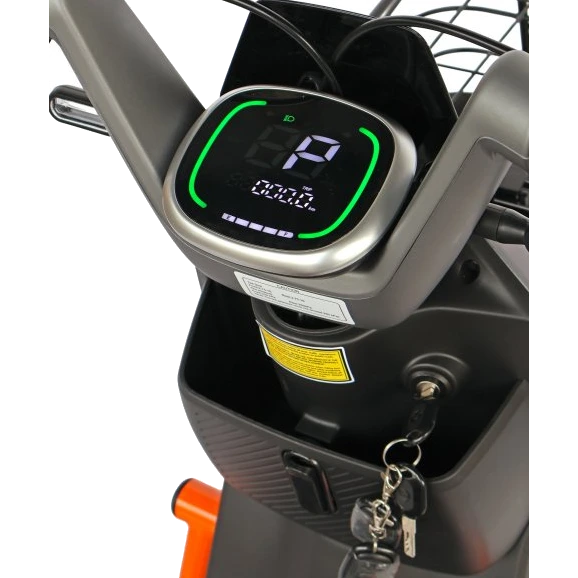 Максимальна потужність двигуна, Вт 800 Максимальна швидкість, км/год 25 Максимальне навантаження, кг 75 Дальність поїздки, км 70 Напруга батареї, В 60 Час заряду батареї, год 6-8 Місткість батареї, А•г 23