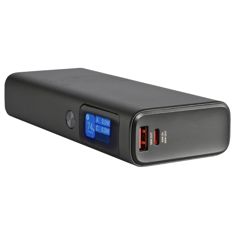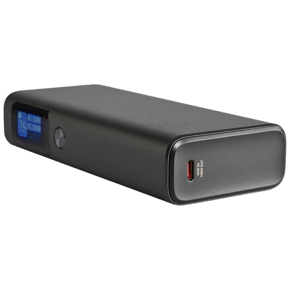 Ємність 20 000 мА•г Виходи USB-A: DC 5V/3A, 9V/3A, 10V/2.25A, 12V/2.5A (30W); USB-C1: DC 5V-15V/3A, 20V/5A (PD100W); USB-C2: DC 5V-15V/3A, 20V/3A (PD60W) Входи USB-C1: DC 5V/3A, 9V/3A, 12V/3A, 15V/3A, 20V/3.25A (PD65W); USB-C2: DC 5V/3A, 9V/3A, 12V/3A, 15V/3A, 20V/3A (PD60W) Потужність 130 Вт