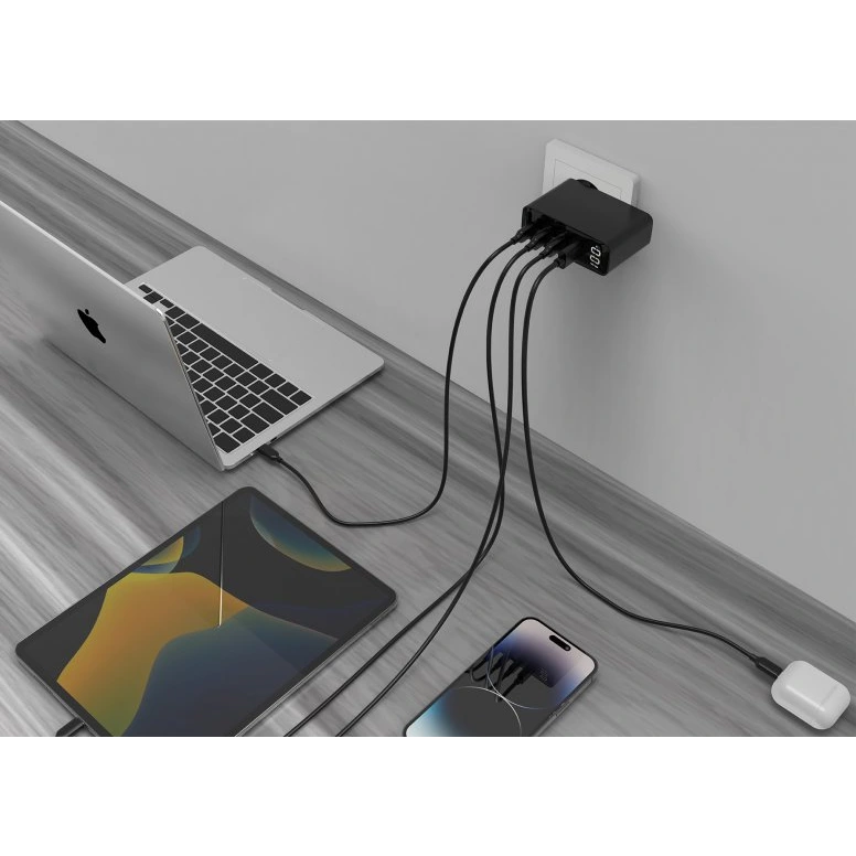 ● Быстрое зарядное устройство USB с 4 портами мощностью 100 Вт: поддерживает спецификации QC 3.0 и PowerDelivery (PD);