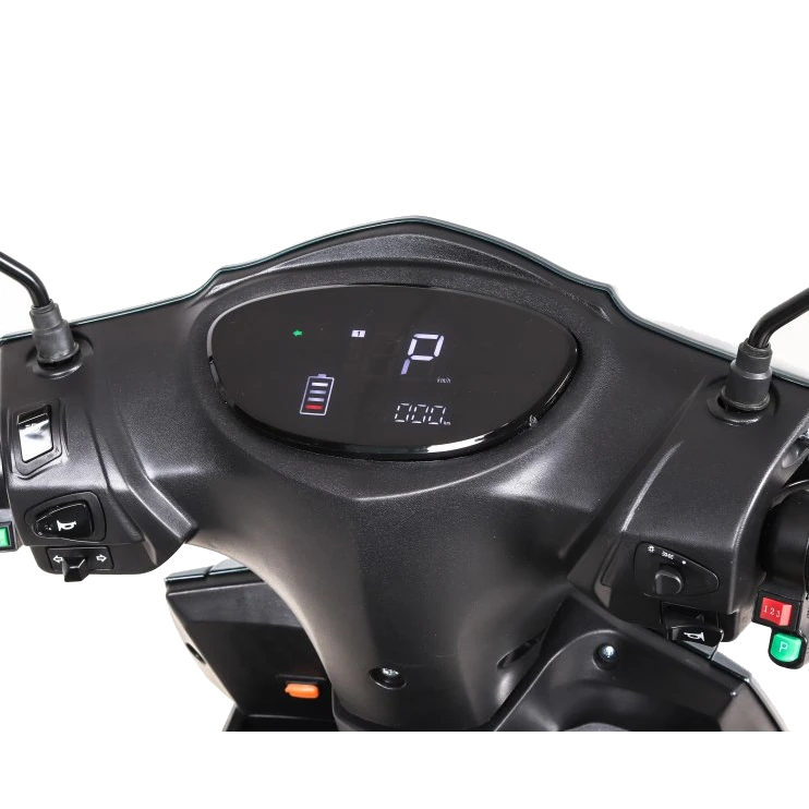 Максимальная мощность двигателя, Вт 1500 Максимальная скорость, км/ч 45 Максимальная нагрузка, кг 200 Дальность поездки, км 80 Напряжение батареи, В 72 Время заряда батареи, ч 6-8 Емкость батареи, А•ч 20 Диаметр колес 12" Вес, кг 119