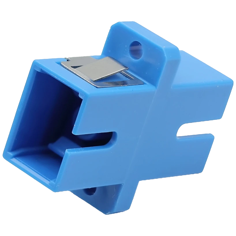 Адаптер служит для соединения пигтейла и оптического патч-корда. SC адаптер предназначен для соединения дуплексных оптических шнуров. Корпус адаптера выполнен из пластика различных цветов: для многомодовых применений – из бежевого, для одномодовых применений – из синего. Крепление адаптера осуществляется с помощью пластикового стопора