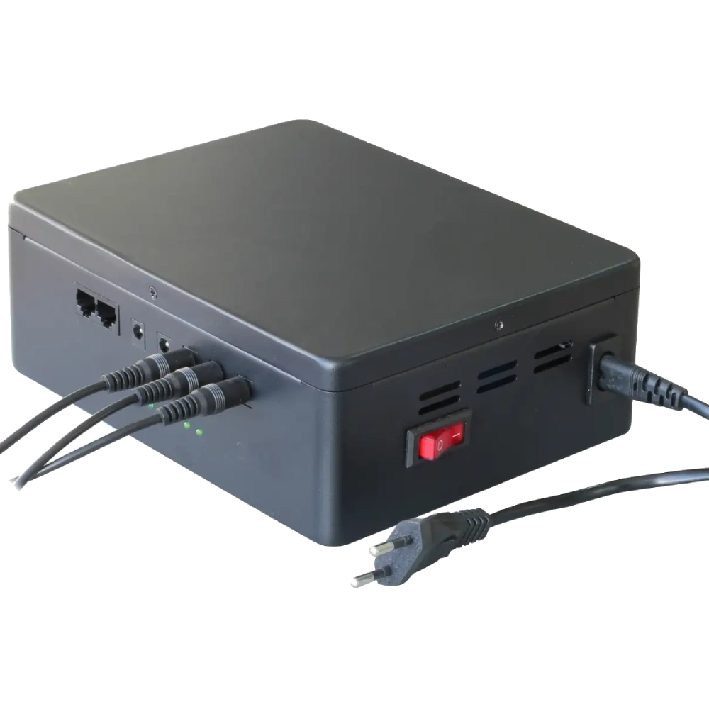 ● Выходное напряжение: 2 выхода DC 12В до 5A, 3 выхода DC 12В до 3A, PoE инжектор стандарта IEEE 802.3af/at 48В 0,7A;