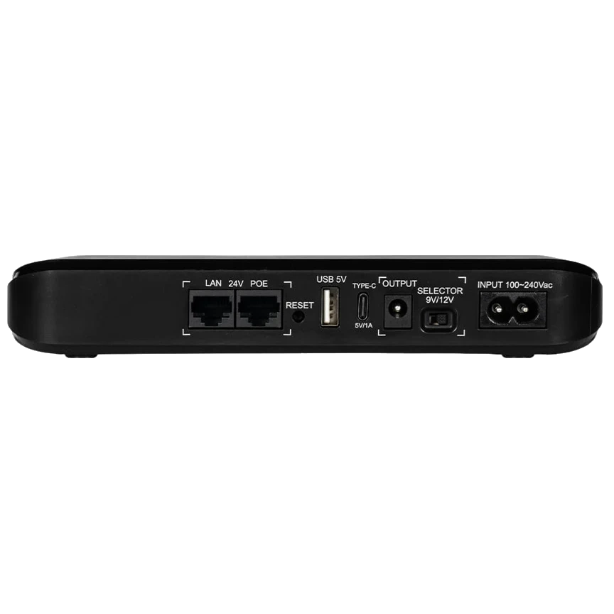 ● Выходные интерфейсы USB, Type-C, DC, PoE, выходное напряжение 5 В (USB) + 5 В (Type-C) + 9/12 В (DC) – переключается + 24 В (PoE). Выходное напряжение и ток каждого выхода: USB: 5В/2А, Type-C: 5В/1А, DC: 9В/2А, 12В/1.5А, PoE: 24В/0.7А.;