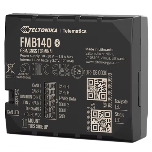 Совместимость 2x CAN Метод работы GSM/GPRS/GNSS/BLUETOOTH® LE Подключение GPS, GLONASS, GALILEO, BEIDOU, SBAS, QZSS, DGPS, AGPS Частотная характеристика GSM Quad-band 850 / 900 / 1800 / 1900 MHz Питание 6 - 30В DC