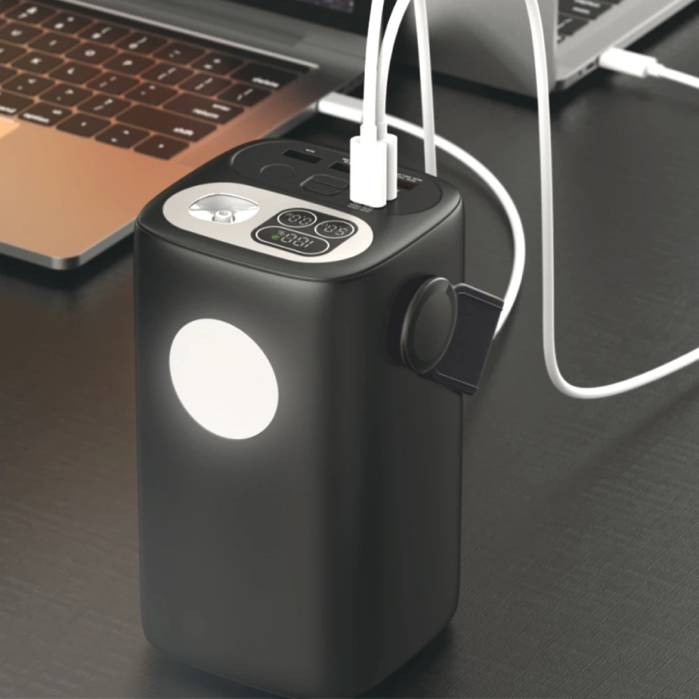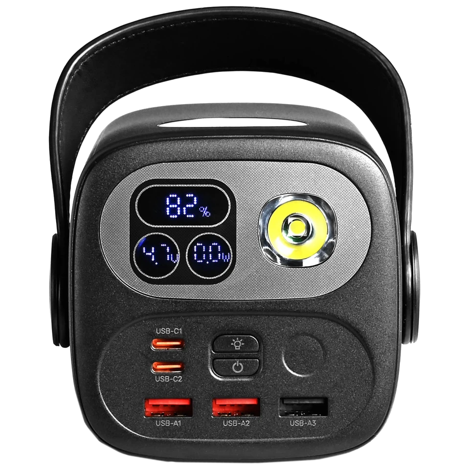 Емкость 60 000 мА•ч Тип аккумулятора литий-полимерный Выходы USB-A 1/2: DC 5-10V/2.25A, 5V/3A, 9V/2A, 12V/1.5A (22.5W); USB-C 1/2: DC 5V/3A, 9V/3A, 12V/3A, 15V/3A, 20V/5A (PD100W); USB-A3: DC 5V/2A Входы USB-C 1/2: DC 5V/3A, 9V/3A, 12V/3A, 15V/3A, 20V/5A (PD100W) Мощность 100 Вт Особенности встроенная LED-лампа