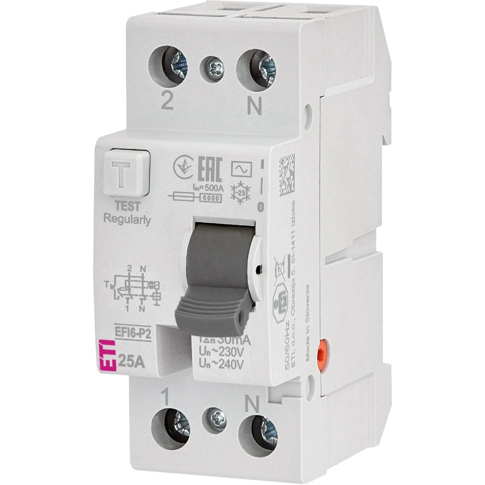 Реле дифференциальное (УЗО) ЕТІ 2р EFI6-P2 25/0,03 тип AC (6kA)