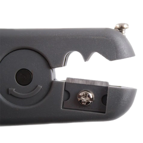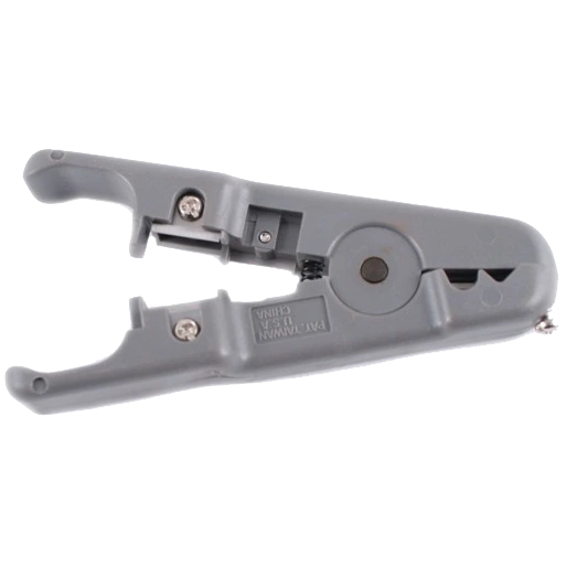 Инструмент для очистки и обрезки кабеля. Имеет удобную форму прищепки, нож для обрезки и отдельный нож для зачистки витой пары. Имеется регулировочный винт.