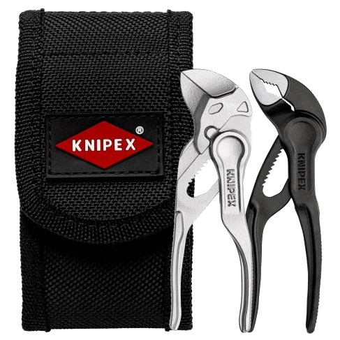 Гаечный ключ XS: Гаечный ключ XS имеет длину 100 мм и способность мягко захватывать детали до 21 мм. Это делает его идеальным для работы с гайками и болтами. KNIPEX Cobra® XS: Эта миниатюрная версия KNIPEX Cobra имеет длину также 100 мм и способность захватывать круглые детали до 28 мм с эффектом самозажима.