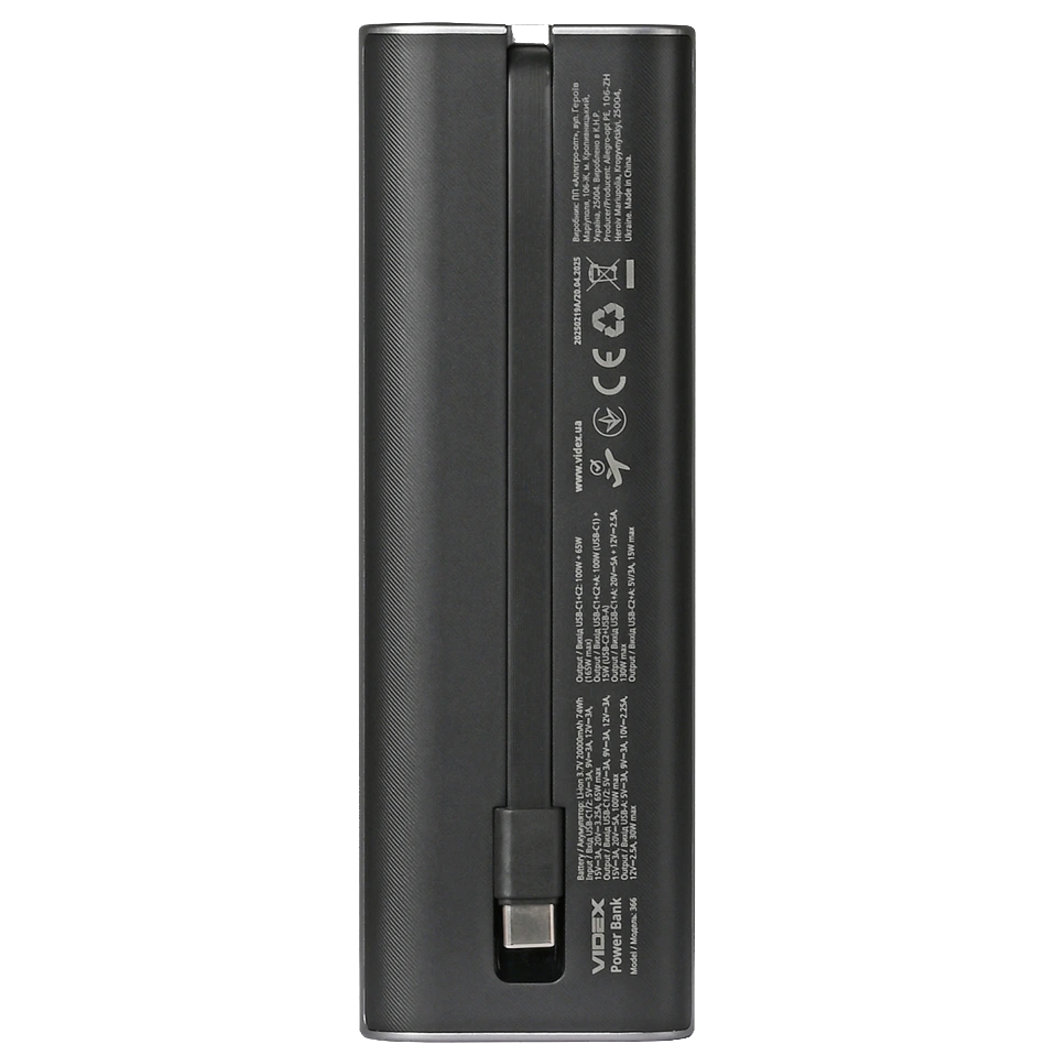 Повербанк VIDEX VPB-366 PD100Вт 20000мА•ч